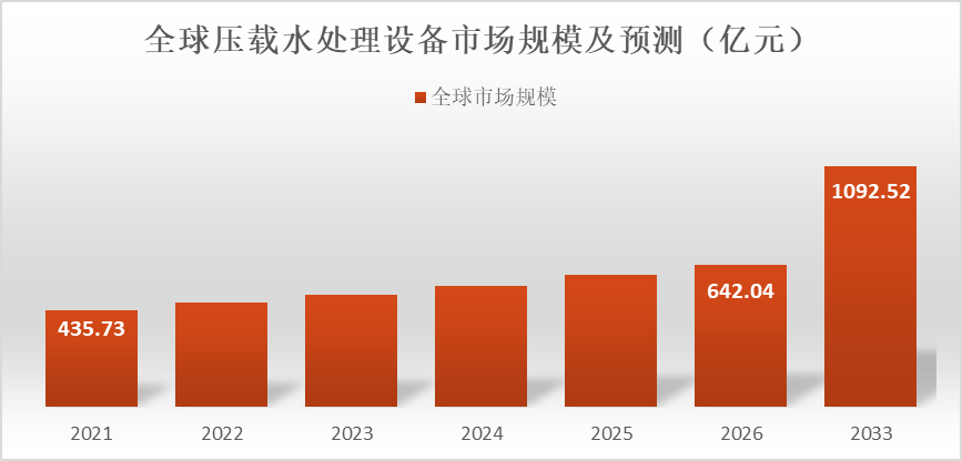 根据问可汇(WENKH)深度研究分析,2026年全球压载水处理设备的市场规模达到642亿元。全球航运业持续发展带动船舶数量与运营范围不断扩大,国际海事组织环保法规逐步收紧并形成强制约束,船舶运营方对水体生态保护与合规运营的重视程度持续提升,压载水处理设备作为船舶必备环保装置,市场需求随之稳步增长,行业整体规模呈现持续扩张态势。未来预计以7.89%的年复合增长率增长至2033年的1093亿元。