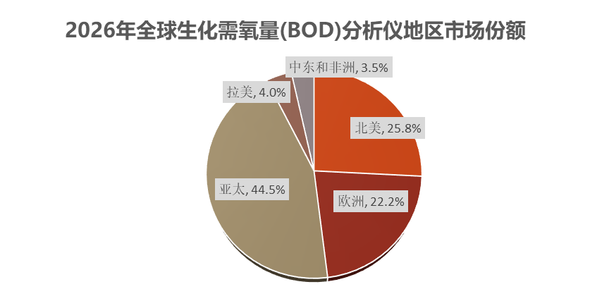 根据问可汇(WENKH)深度研究分析,2026年全球生化需氧量分析仪市场中,亚太占比44.5%。该区域凭借快速工业化进程与严格环保政策成为最大市场,多国持续加大污水治理投入,推动在线监测设备需求增长,头部企业通过本地化生产与渠道合作提升渗透率,产业基础完善,产业链配套成熟,未来将持续保持主导地位。